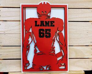FOOTBALL WOOD SIGN - Custom Laser Cut - Your Colors, Your Name