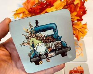 Set of 4 MATCHING COASTERS, FALL, Autumn, Pumpkins, Gnomes, T...