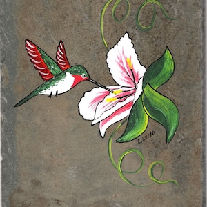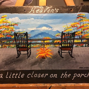 Slate is millions of years old. This recycled roofing slate was quarried in the U.S.A. and may have spent 100 years on an American roof. Chips and holes do not retract, but rather, enhance the uniqueness of the artwork. Heat, cold and rain will not affect this slate.