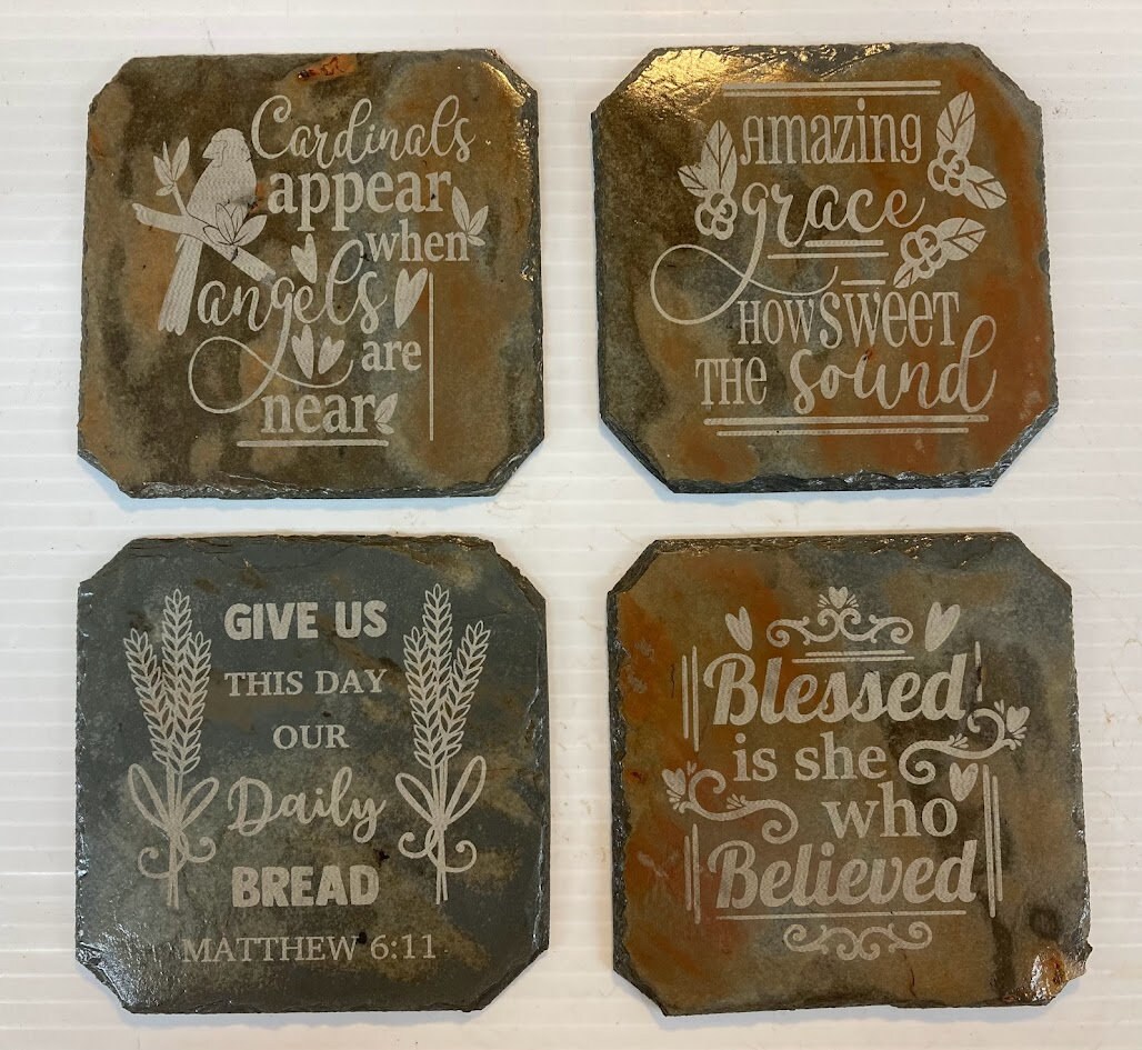 These Slate Stone tiles are recycled/reused from old barns, houses and churches from all over the U.S. into beautiful handmade items. Sourced, cut and prepared for use right here in Tennessee. I Laser Engrave them with your personalization.