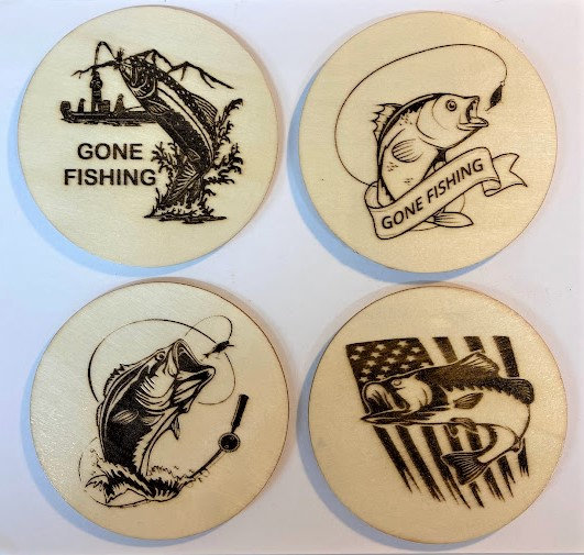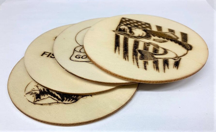 You will get a set of 4 coasters matching the photos. Coasters have cork backing for furniture protection or can be turned over for use. Natural wood finish with a clear coat for protection.