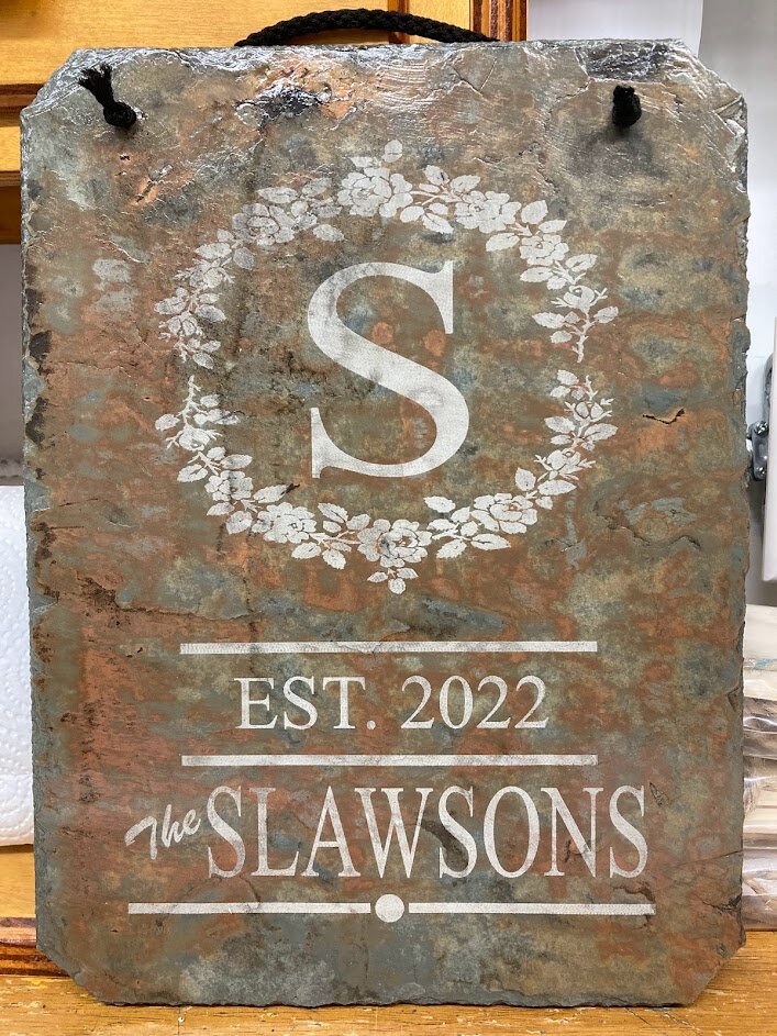 ********** 9" x 12" SLATE STONE SIGN - WEDDING, ANNIVERSARY, MONOGRAM **************