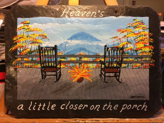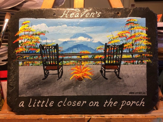 HEAVEN'S A LITTLE CLOSER ON THE PORCH - HANDPAINTED SLATE SIGN 9" X 12"