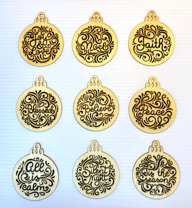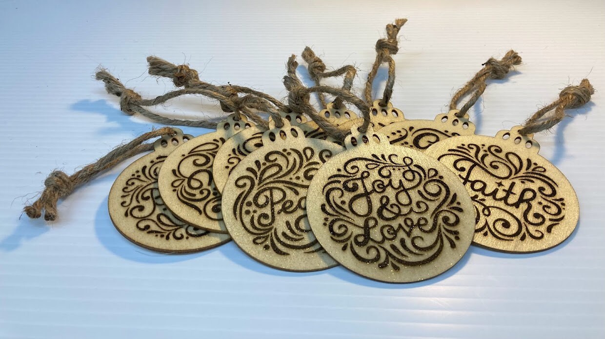 These 3" x 3.5" wood ornaments are the perfect addition to your Christmas tree. I carefully sand, laser engrave and clear coat these ornaments so that you will have a set of traditional ornaments that will last a lifetime. Included are all natural jute strings for hanging, adding that extra special touch.