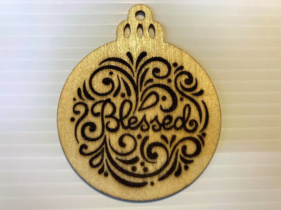 You will get a set of 9 ornaments, with the engravings shown in the photos. They are a perfect reminder of the true Reason for the Season. All ornaments are engraved both sides. These ornaments are lightly coated with gold glitter, to give off a slight shine in the light. Glitter will not come off.
