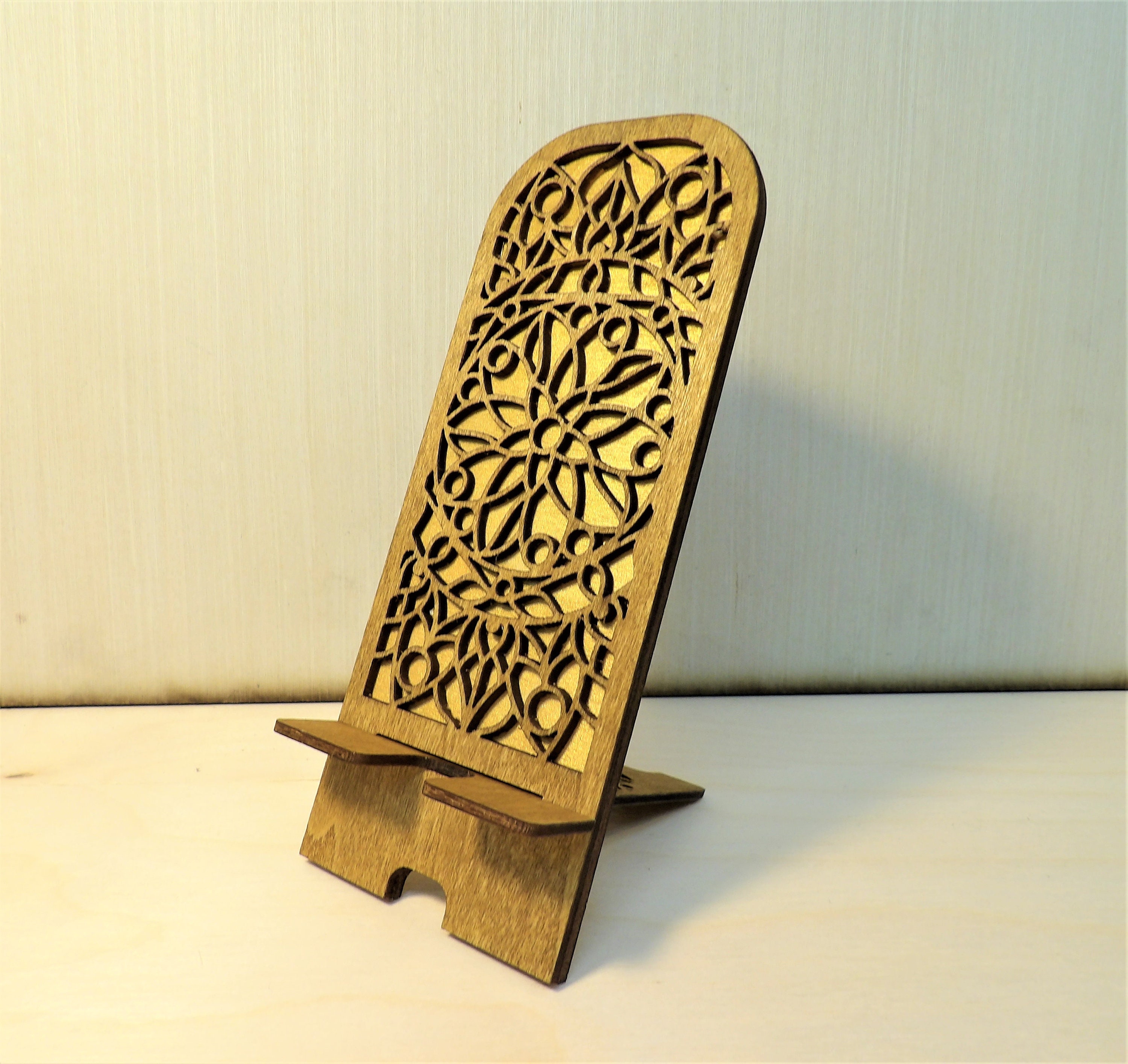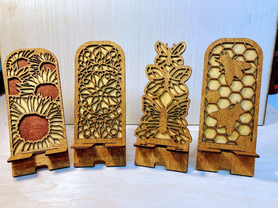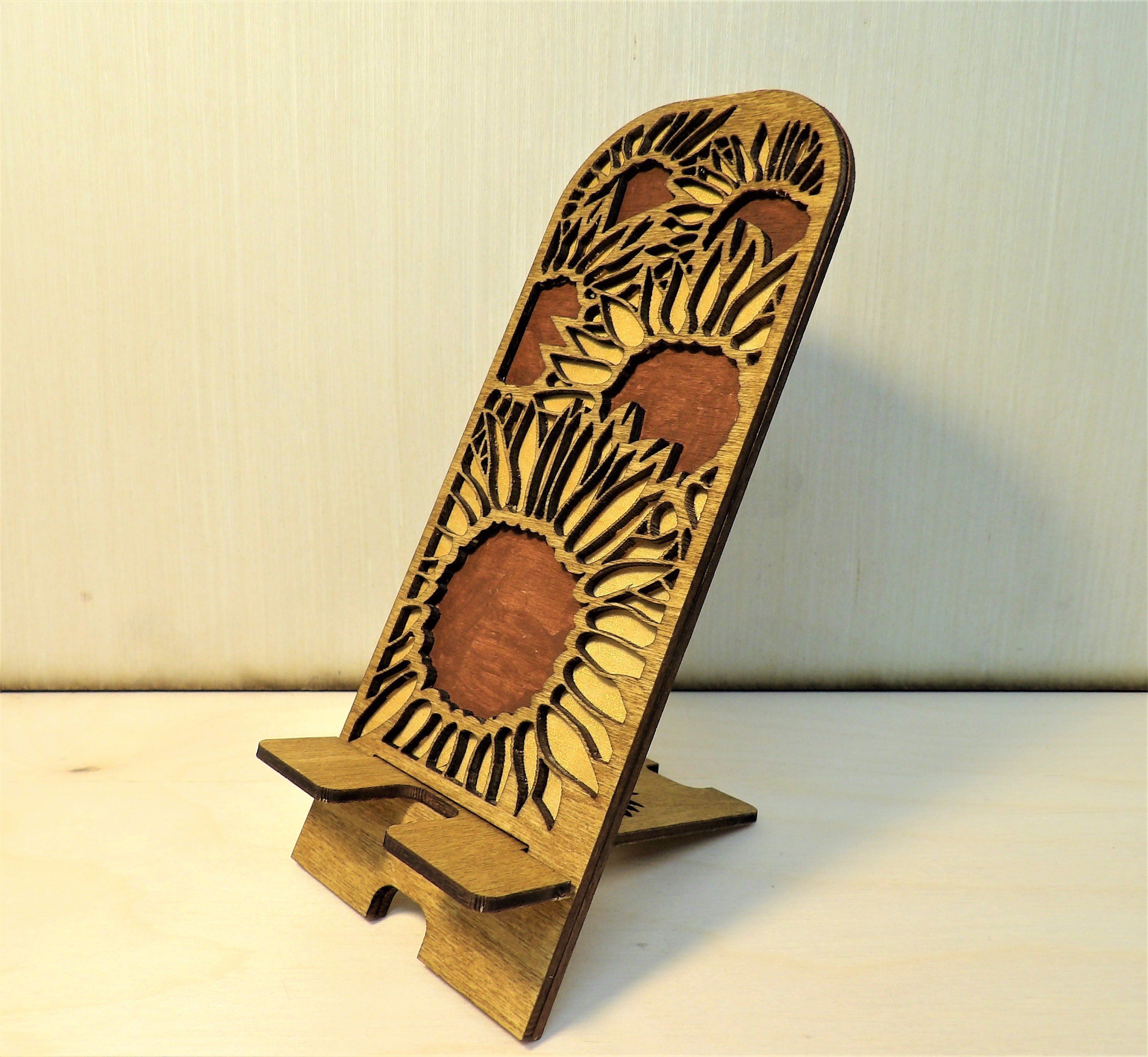 Choose from 4 designs, painted and stained, layered wood. The background is a shimmering gold with the top layer stained a lovely canyon brown.