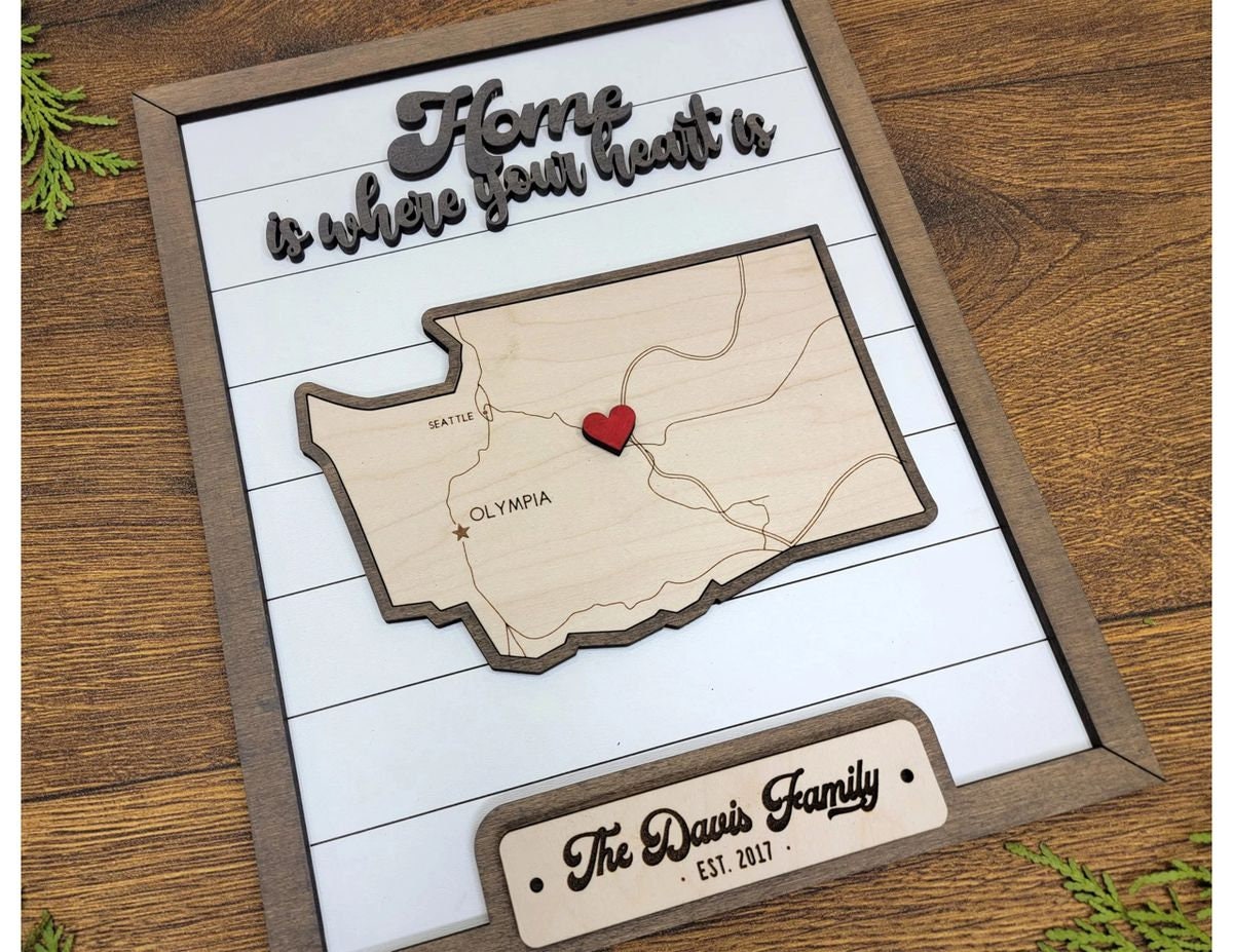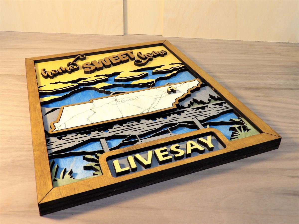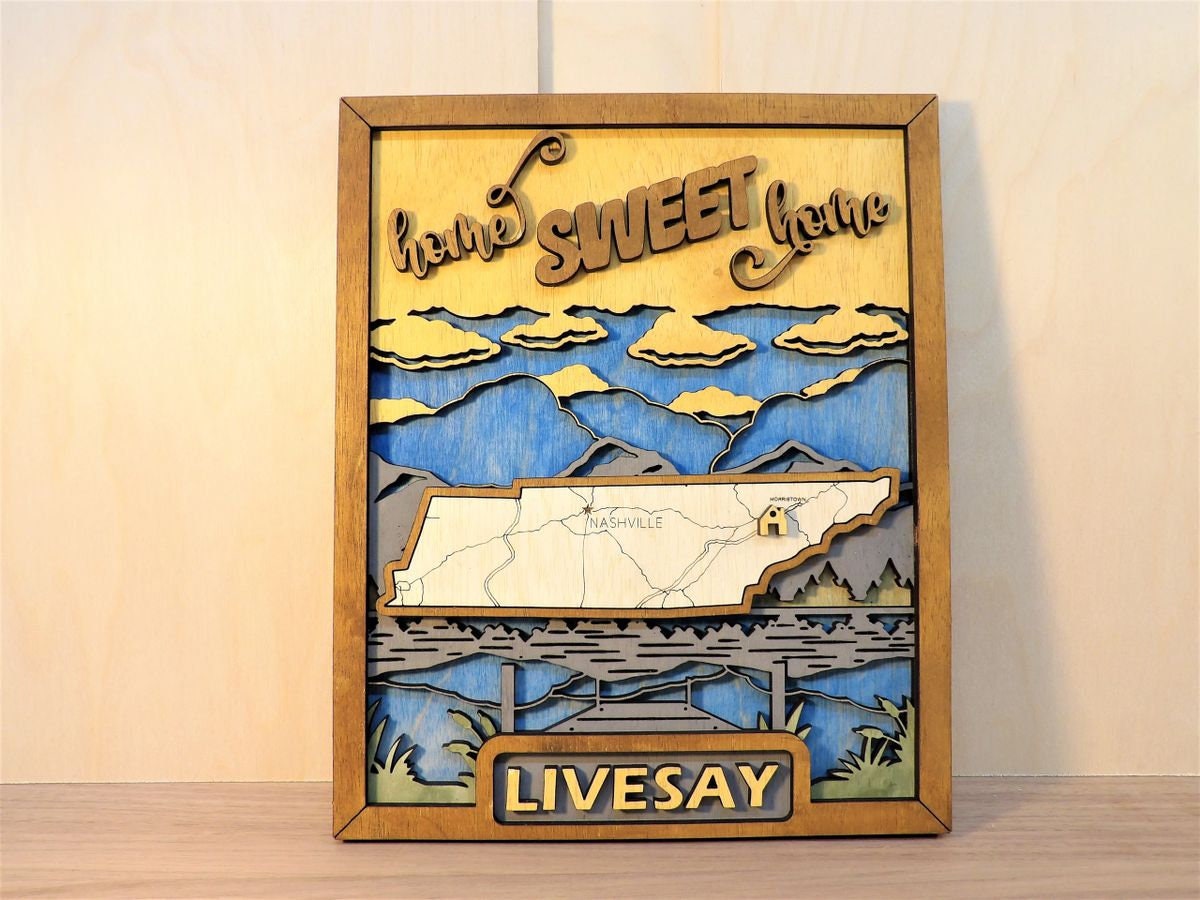 STATE MAP SERIES - 9' x 12" 3d Laser Cut Map - Custom Made in USA, Morristown, TN. Introducing the State Map Series, a customizable Home Decor Plaque that allows you to choose your TEXT, ICONS and BACKGROUND that perfectly embodies your State and meets your personal preferences. Each State Map is carefully hand crafted to ensure a long lasting record of where it all began, or a favorite cabin or camp in the woods. When ordering, contact me with your choice of TEXT such as FAMILY NAME, ICON, BACKGROUND and STATE. There are also a number of phrases to choose from. 1. Home Sweet Home 2. Home is Where the Heart Is 3. Life Is Better At The Lake 4. Life is Better At The Cabin 5. Never Stop Exploring 6. Our Story Begins Here. These are custom made, so please allow one week before shipping or pickup. Let me know if you have any questions. I can do larger sizes, up to 12" x 18", contact me fore quotes on those.