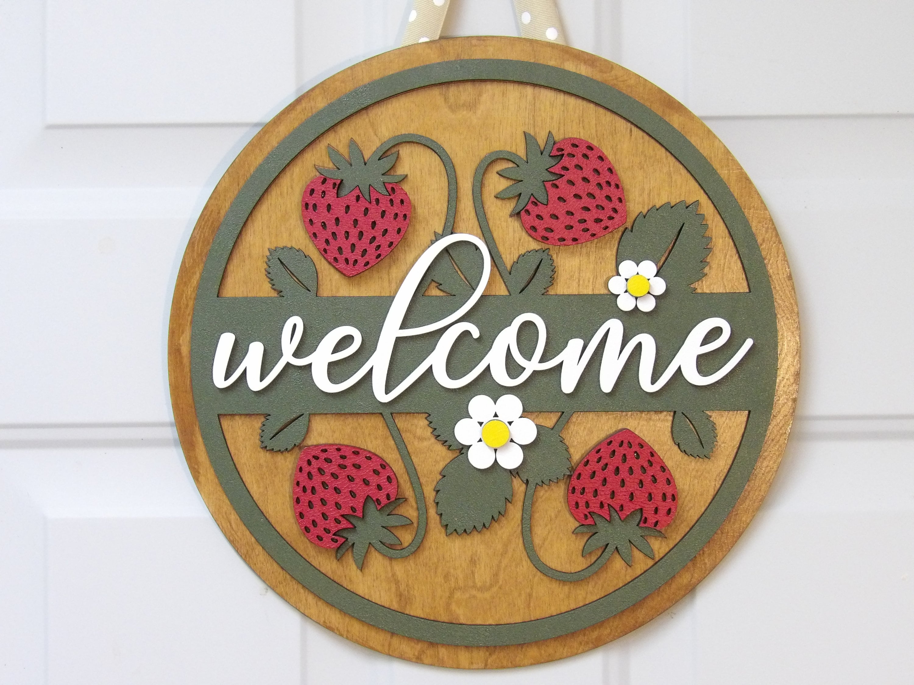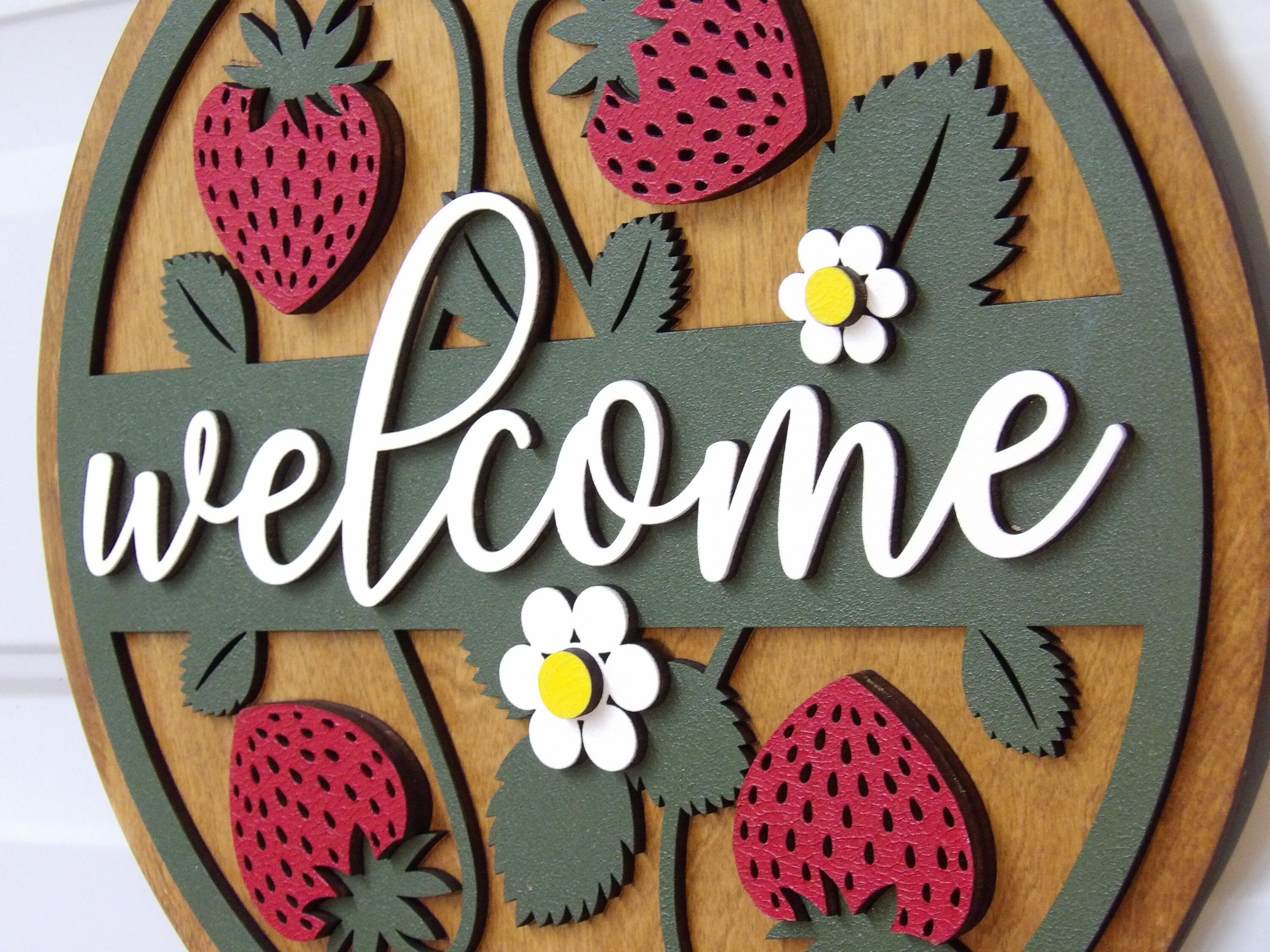 This 14” Door Hanger will welcome your guests with a beautiful Strawberry and Flowers scene. Hand crafted by me in my shop in Morristown, TN. Made from 1/4” sustainable plywood, laser cut and glued in layers for a 3-D look.