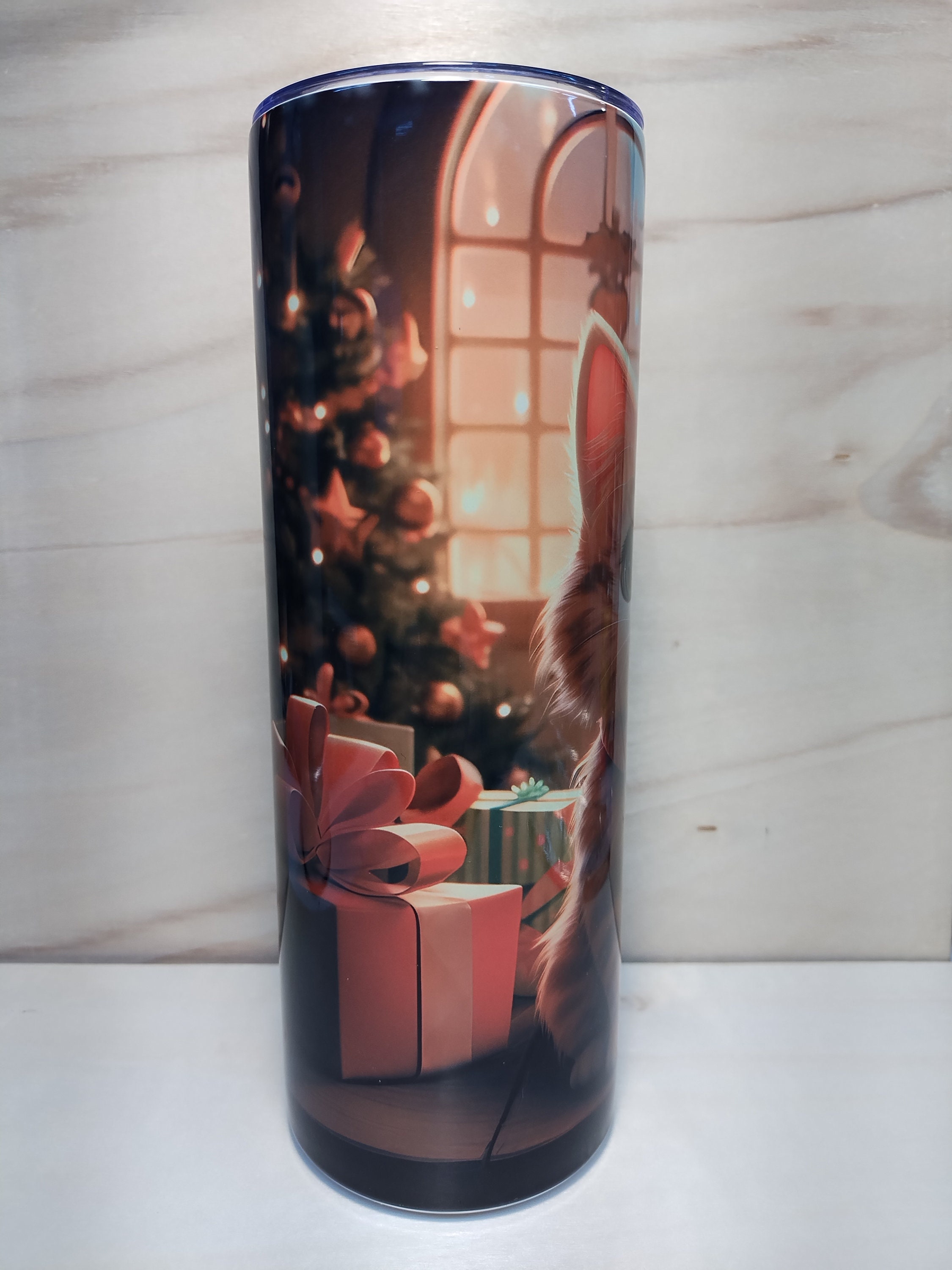 And to add a touch of holiday cheer, each tumbler comes adorned with an adorable image of a Kitten nestled by a Christmas tree, surrounded by beautifully wrapped presents. It's the perfect companion for cozy nights by the fire or festive gatherings with loved ones.