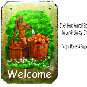 These Slate roofing tiles are recycled from old barns, houses and churches from all over the U.S. into beautiful hand painted clocks and signs.